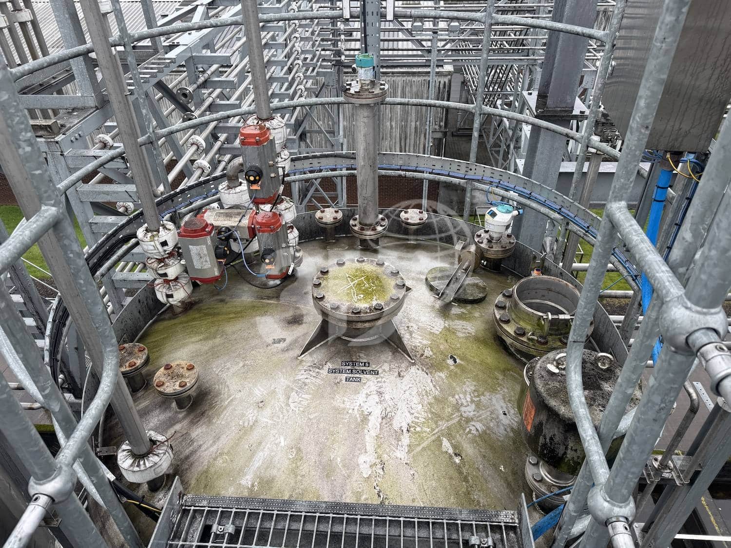Used 32,400 Litre Stainless Storage Tank, manufactured by Sinclair Stainless Fabrications Ltd, 2014. Material of construction 304L grade stainless steel. Orientation vertical, cylindrical, dished top and bottom. Support on 4 stainless steel legs. Dimensions 2500mm internal diameter, 6100mm on the straight side, 9950mm overall height. Design code BS EN13445/ASME, design pressure 0.1/-0.01 bar, design temperature 50/-20degC, operating pressure Atmospheric. The storage tank is fitted with internal fill pipes, internal baffles, top mounted Universal DN250 emergency vent valve and Protego VD/SD 80 pressure and vacuum relief valve. The tank was previously used to store solvents.