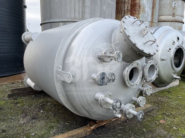 Unused 4,200 Litre Stainless Steel Reactor Vessel, manufactured by Booker Wellman Ltd, 2018. Material of construction 316L stainless steel. Orientation vertical, cylindrical, dished top an bottom. The reactor is supported on 4 stainless steel legs. Dimensions 1500mm internal diameter, 1875mm tan to tan, overall height including leg supports and agitator 4457mm. Design code PD 5500: 2015 CAT 2, design pressure 1.5 bar, design temperature 40degC, jacket design pressure 4bar, jacket design temperature 50degC. The reactor vessel is fitted with a top mounted Ekato four blade turbine agitator, powered by a 2.2kw HEW ATEX rated electric motor.
