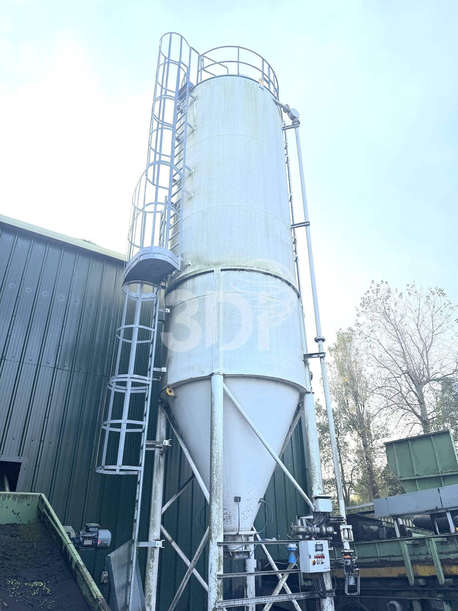 Used 50m3 Steel Silo, manufactured by Silexim, 2017. Serial no. 17-744. Material of construction mild steel. Orientation vertical, cylindrical, coned bottom, dished top. Support on 4 steel legs. Dimensions 2800mm diameter, 7500mm shell length, 4020mm leg length, 12500mm overall height, 1450mm distance from bottom valve to the floor. The silo is complete with a access ladder and top hand rail, top WAM Dust filter, pressure relief valve, fluidisation cone, bottom outlet valve and blow pipe. The silo was previous used to store lime, however it can be used to store powder or granular materials.