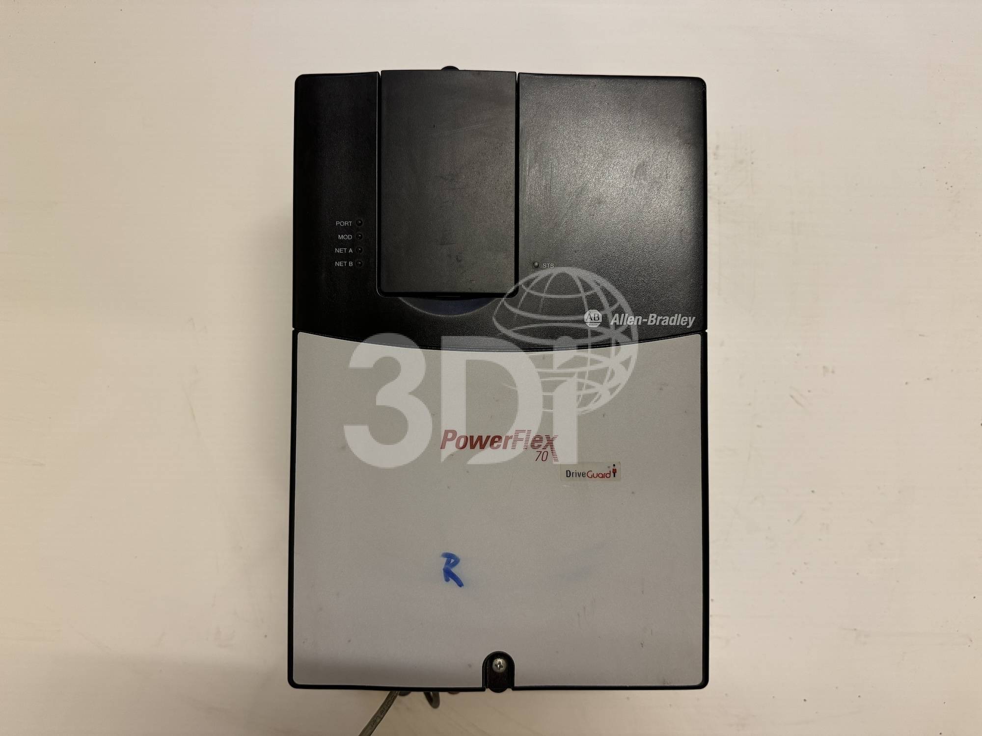 Used Allen-Bradley 20AC030A0AYNANC0 PowerFlex 70 AC Drive, 400V AC, 3PH, 22A, 15kW / 20HP Normal Duty, 11kW / 15HP Heavy Duty, Panel Mount – IP20 / NEMA Type 1, with Conformal Coating, No HIM (Blank Plate), Brake IGBT Installed, Without Drive Mounted Brake Resistor, Second Environment Filter per CE EMC directive (89/336/EEC), No Communication Module, Enhanced Control, No Feedback. Serial no.s & age: 18302351 (2011), 03005975 (2009). Removed from a working control panel for a mixing vessel.