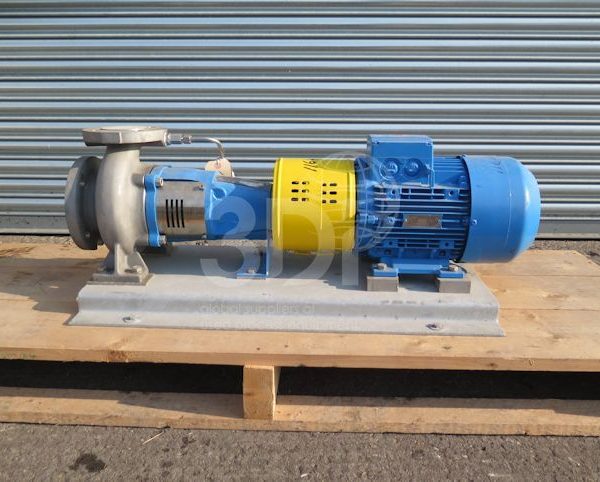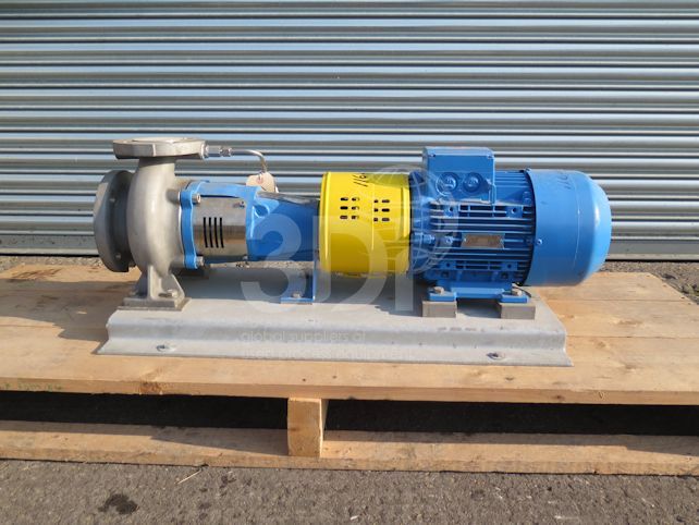 Unused Johnson CombiChem Centrifugal Pump CC50-125 R6M2L1, manufactured by Johnson Pump (SPX Flow), 2004, Type CC50-125 R6M2L1, rated capacity 51m3/hr, 15m rated head, 13bar max pressure, 123mm fitted impeller diameter, suction 80mm flanged, discharge 50mm flanged, pump casing material stainless steel, impeller material stainless steel, shaft sealing mechanical seal, unbalanced, shaft sleeve, bearing 2 sealed deep groove ball bearings. Pump is powered by a 4 kw Siemens electric motor, 50/60hz, 3ph, 2905rpm.