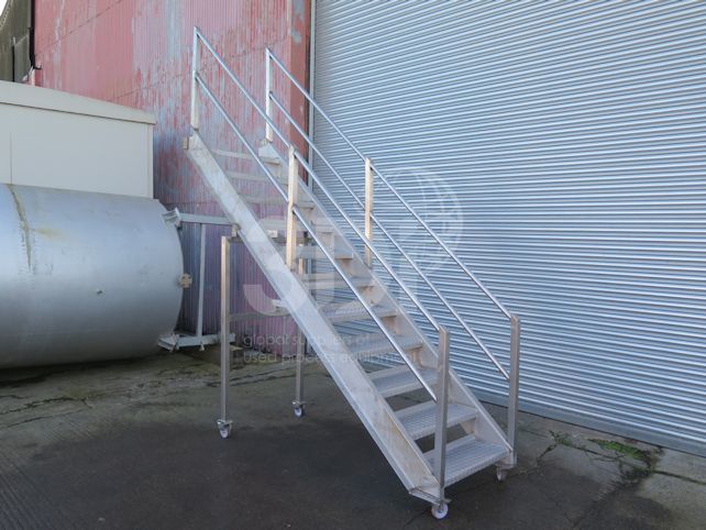 Mobile Stainless Steel Steps, access height 2550mm, 11 steps, step size 800mm wide x 280mm deep, tubular hand rails, 4 x LAG castor wheels.